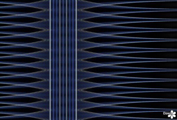 As in a zig-zag pattern made out of pale blue string.